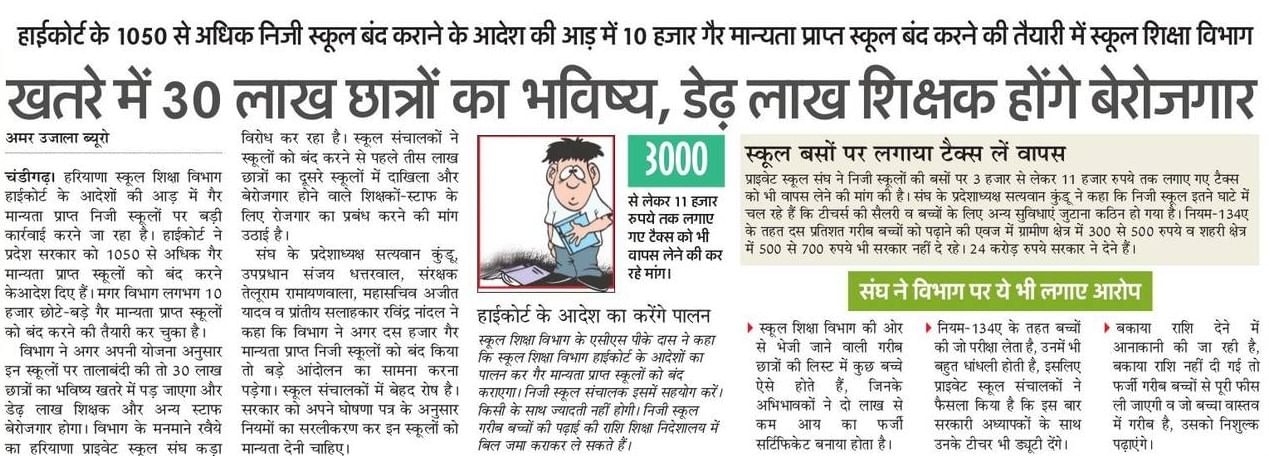 हरियाणा में हैं 10 हजार गैर मान्यता निजी स्कूल, बंद करने की तैयारी में शिक्षा विभाग
