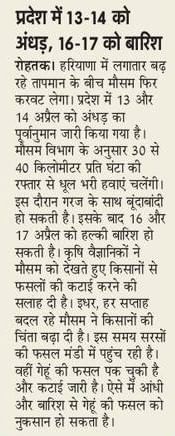 हरियाणा में अगले सप्ताह मौसम खराब: 13-14 को उड़ेगी धूल, 16-17 को बारिश के आसार