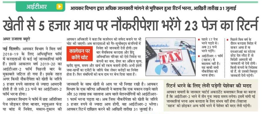 अगर कर्मचारी को 5000 रुपए सालाना से ज्यादा आमदनी खेती से हुई तो भरनी होगी 23 पेज की ITR