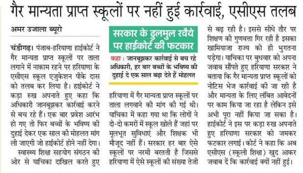गैर मान्यता प्राप्त निजी स्कूलों पर अब तक नहीं हुई कार्रवाई, मुख्य सचिव हाई कोर्ट में तलब