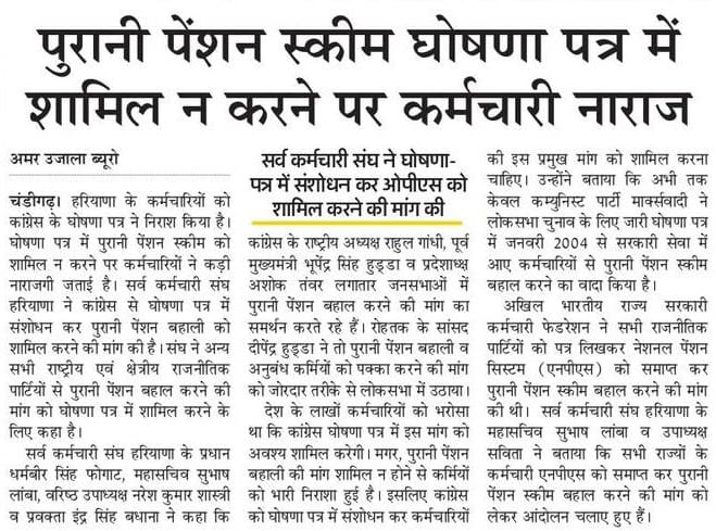 पुरानी पेंशन को घोषणा पत्र में शामिल नहीं करने पर कर्मचारी खफा