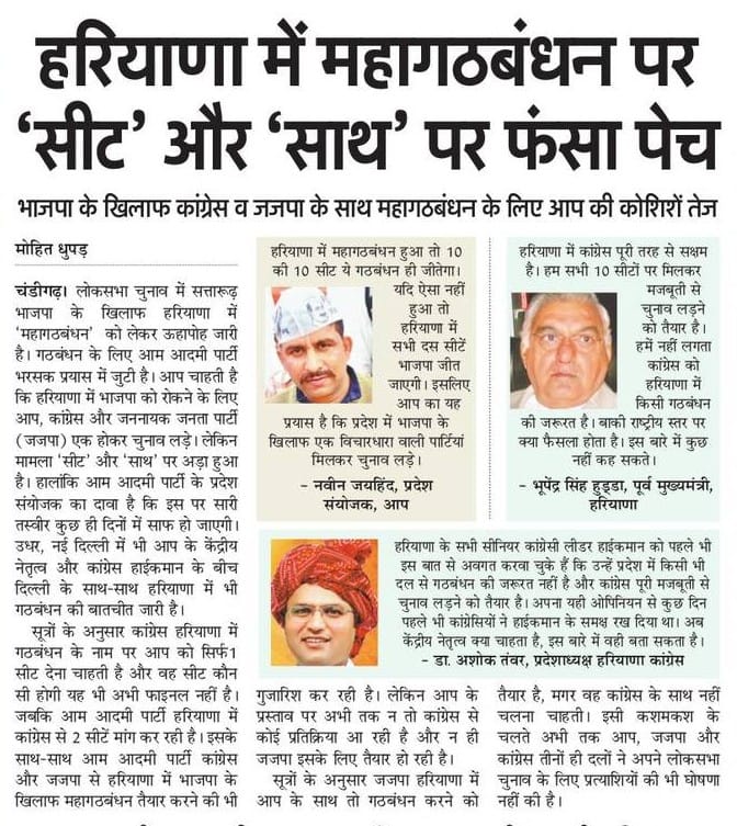 लोस चुनाव: हरियाणा में महागठबंधन की राह में ये होंगे पेंच