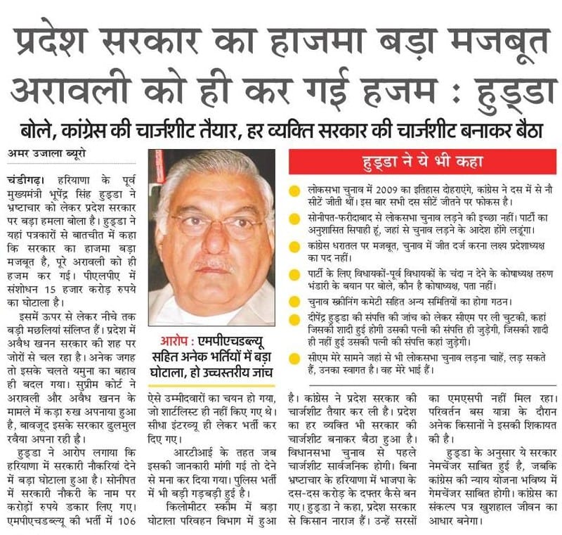 हरियाणा सरकार हजम कर गई अरावली को ही - पूर्व CM भूपेंद्र हुड्डा