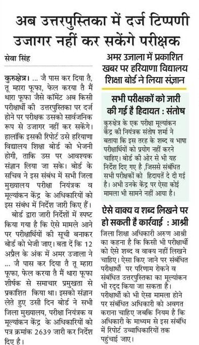 HBSE: उत्तर पुस्तिका में लिखी हुई अजीब टिप्पणियां उजागर न करें मूल्याङ्कन करने वाले शिक्षक